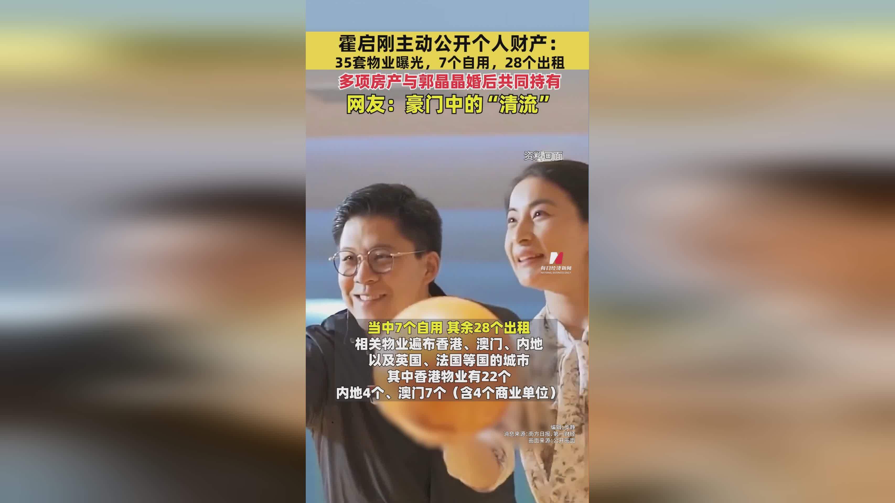 2026-03-21 07:10:45分类:河池阅读(34588) 霍启刚最近因一份财产申报清单引发全网热议。作为连任议员,他赶在法定截止期前早早完成登记,35处横跨港、澳、内地及英法的物业明细被公之于众,其𰷉套自住、28套出租,浅水湾亿元豪宅与伦敦市中心公寓的具体位置都标注得一清二楚。但真正让网友沸腾的,是清单里几乎所有房产都印着“霍启刚与郭晶晶婚后共同持有”的字样。在豪门联姻动辄上演财产分割戏码的当下,这份联名清单像一记响亮的耳光,打在了那些将婚姻当利益交换的算计者脸上。